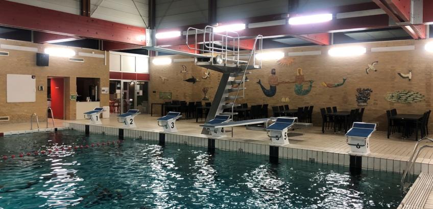 Svømmehallen har seks svømmebaner - en 1m vippe og en 3m vippe.